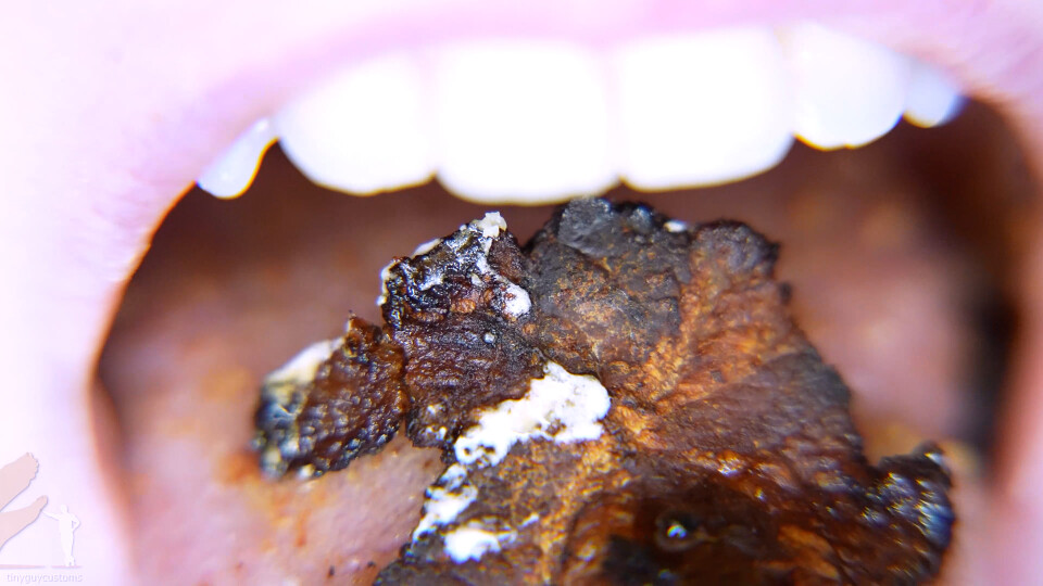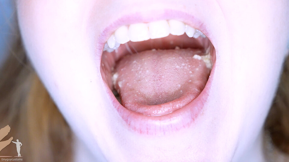 She takes her time enjoying waffles, eggs, bacon, and strawberries with cream. She slowly munches on each and shows you just what it would be like if you were shrunken down and teased into jumping into her mouth with all of her tasty foods.