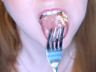 This video has no sound so you can hear Epiphany's throat as she swallows down each morsel of tasty breakfast. There are lots of close ups and slow-motion shots of her lips, teeth, tongue and food as she makes short work of the breakfast we made for her.