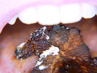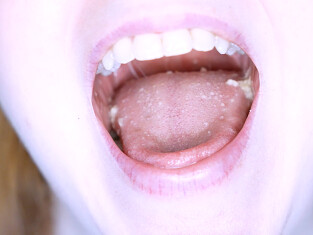 After chewing each piece of food, she mashes it up and opens wide for you to see the pulverized mush that her teeth have turned it into. Then she swallows it down and shows you her empty mouth so you can imagine where it's gone.