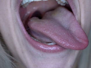 This video has NO music and lots of close-up shots of Harleen's mouth, tongue, teeth, uvula, and throat. There is a long slow-motion portion with sound to hear all of the slowed down lip-sucking, uvula-popping, and other mouth action sounds.