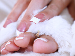 She hops onto the bed cheerfully and shows off her new fuzzy slippers. She knows how much you love her feet and even got your favorite French pedicure. She invites you to come closer and you are enthralled by her beauty and her sexy feet and toes. She lets you play to your heart's content in between her toes and inside her slippers.