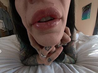 Now she explains, almost casually, that she decided to shrink you as payback for being so persistent. Her face lowers until her lips hover just inches from you, her warm breath washing over your tiny body. “What am I going to do with you?” she muses with a soft laugh. “I could do anything I want. You’re so small I could swallow you whole if I wanted to.” She opens her mouth wide to prove her point, and you can see she isn’t exaggerating. Her tongue slides out, brushing near you as she laughs again.