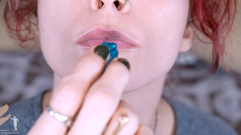 She greats them warmly and offers them a snack. But what they don't know is this naughty snack will shrink them down into a tiny treat for Remedy to play with and enjoy. After the transformation is complete, she picks them up and tells them their car keys and wallet are now hers. She gives them a kiss and relishes how sweet and tasty they are. She licks them and sucks on their whole body and tosses them in her mouth for fun. But her fun can only last so long. She is hungry and you are her little dinner. They stopped at the wrong home... Or the right one???