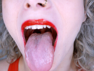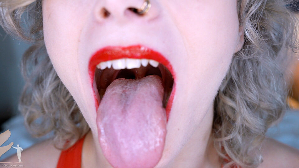 Then she begins showing you the inside of her mouth. She wants you to see inside where you'll eventually be. She shows you her tongue, teeth, and uvula. Her deep and piercing eyes look you over as she flexes her tongue and uvula and continues talking to you about how worthless you are.