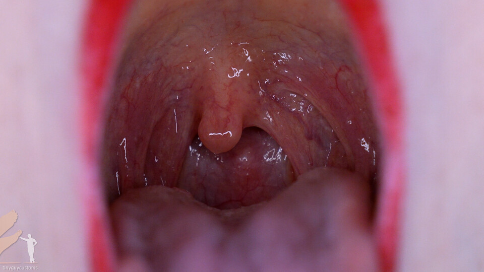 She drools and lets her spit drip down her chin as she is now getting hungry for her little snack before her. She gives you lots of close-up views of her tongue, teeth, uvula and throat. Eventually she puts you inside to tease you and put you close to the back of her throat. You can feel her hot breath and hear her moaning from inside her hot, steamy mouth.