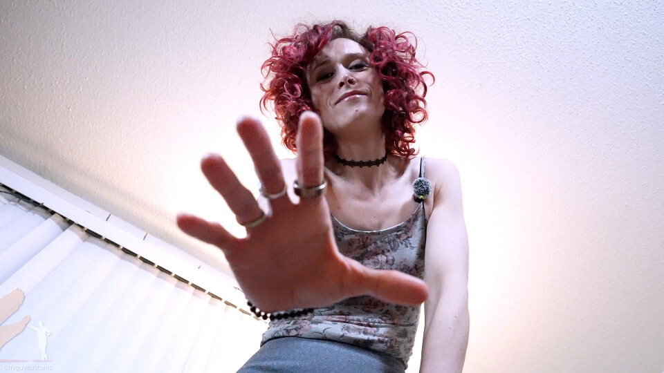 In less than a second you are down at the floor staring at her heels. She has somehow shrunken you down to 6 inches tall! She picks you up and sets you on the coffee table and tells you how it's going to be. Since you threatened her she's going to return the favor. She tells you that you're going to rub and kiss her feet since she's been walking around in heels all night. At first you refuse but she kicks you a few times and you realize there is not point in resisting any longer. Not at your new size.