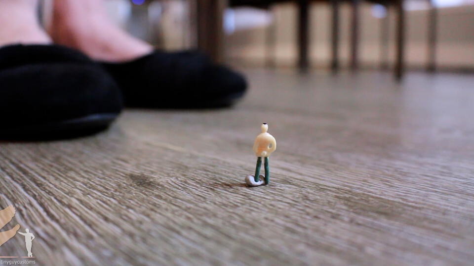 Oblivious, Remedy turned and walked toward the bedroom, nearly stepping on another tiny friend along the way. She slipped off her flats and rubbed her tired feet, sighing with relief. Beneath her, another one of your friends waved frantically and shouted for help, trying anything to get her attention. Just then, her bare foot lifted and came down directly on top of him, trapping him under her toes. He struggled and squirmed, finally managing to reach his phone—thankfully shrunken with him—and dialed her number. She picked up. “Hello?” she answered, confused. “Very funny. Trapped under my toes? Good one.” He begged her to believe him. “It’s me! I’m really down here!”