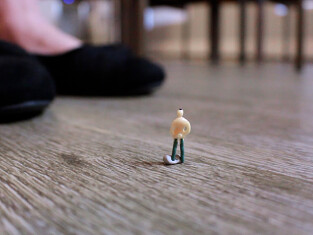 Another friend had remained on the table and began waving desperately, trying to get her attention. “Wow, you’re all really hiding well today,” she said, amused, still completely unaware of what had happened. Then she noticed the tiny figure on the table. “Eww, a bug!” she exclaimed, recoiling. Without hesitation, she flicked him off the edge. He plummeted to the floor below, stunned, only for her massive shoe to rise above him and come crashing down, grinding him into the floor like an insect.